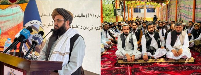 وقال مولوي عتيق الله عزيري نائب الوزير للشؤون الثقافة والفنون، إن جميع مراسيم قيادة الإمارة الإسلامية تصدر وفقا للشريعة ولها قيمة خاصة في إصلاح المجتمع. وأكد في حديثه على أهمية الوحدة والتلاحم، مضيفا أن تقدم المجتمع يعتمد فقط على التعاون والتوحد والأخوة بين المسلمين.