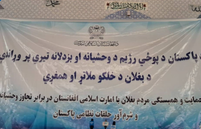 عقد اجتماع شعبي كبير في بغلان لإدانة اعتداء النظام العسكري الباكستاني على أراضي أفغانستان ودعم الرديات التي نفذتها الإمارة الإسلامية ضد العدو.