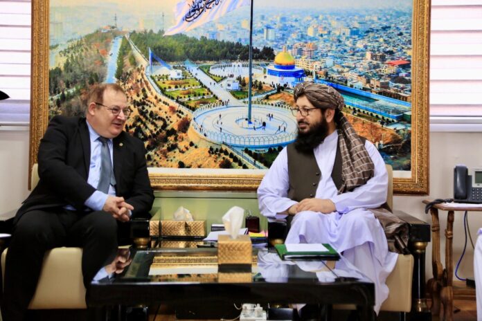 تهران کې د افغانستان سفارت سرپرست مولوي فضل محمد حقاني، هلته د یوناما د اړیکو دفتر له رییس بوجیدار دیمیتروف سره لیدنه کړې ده.