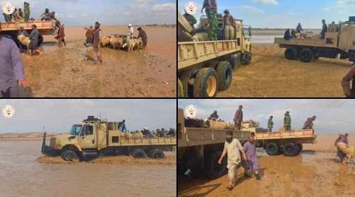 منسوبان کندک انجنیری قولاردوی ۲۱۵ عزم وزارت دفاع ملی، شب گذشته در پی بارندگیهای شدید و سرازیر شدن سیلابها در ساحه «لویمانده» ولسوالی باباجی ولایت هلمند، دهها شهروند و صدها رأس مواشی آنان را که در میان سیلاب گرفتار شده بودند، نجات دادند.